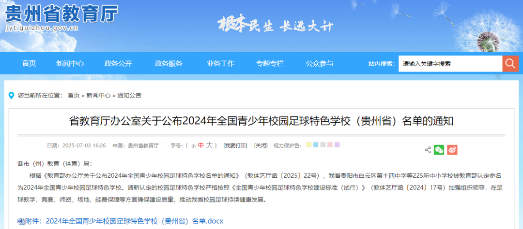 贵州225所,铜仁26所!2024年全国青少年校园足球特色学校名单公布